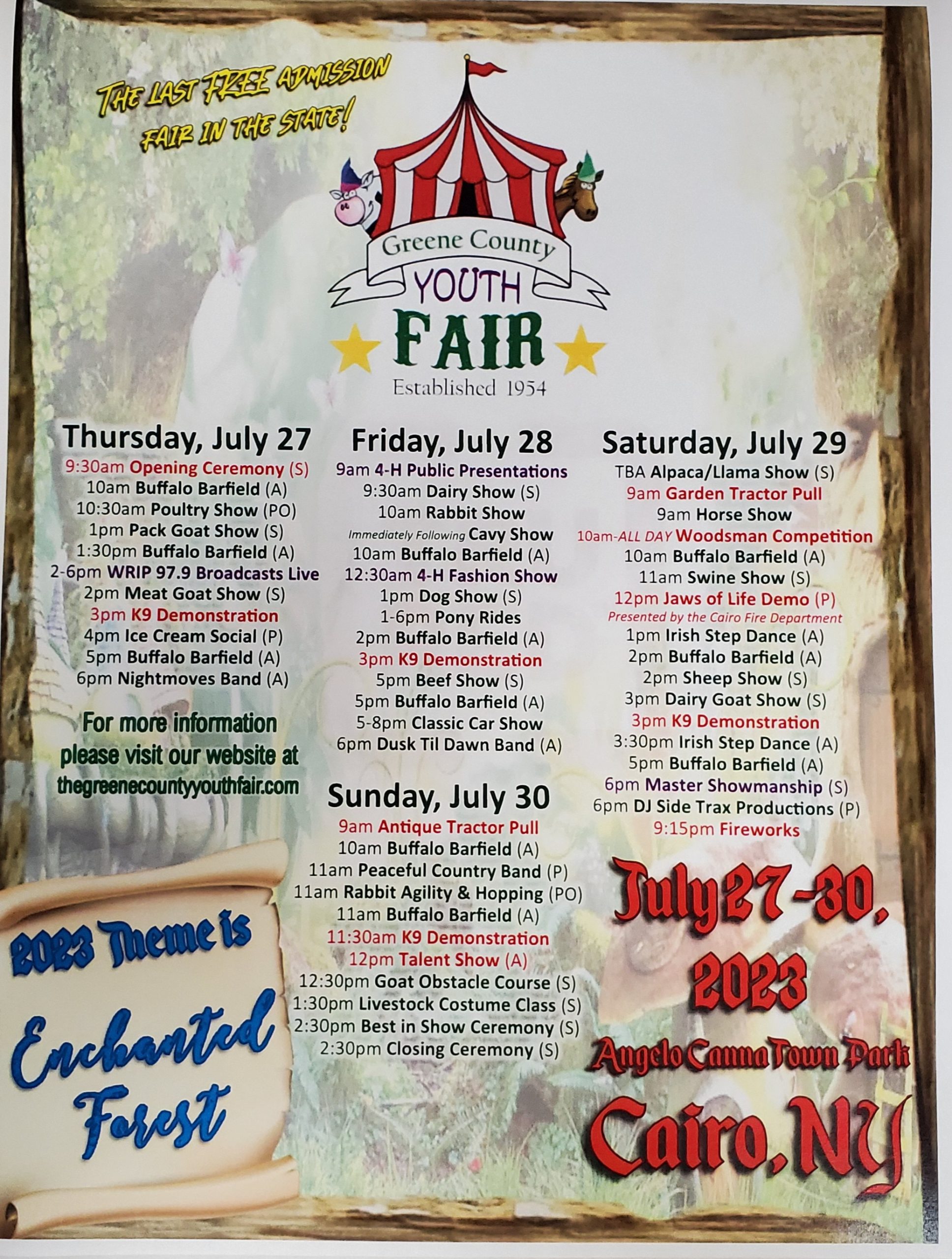 The Angelo Canna Town Park is hosting the Greene County Youth Fair from July 27-30, 2023.
