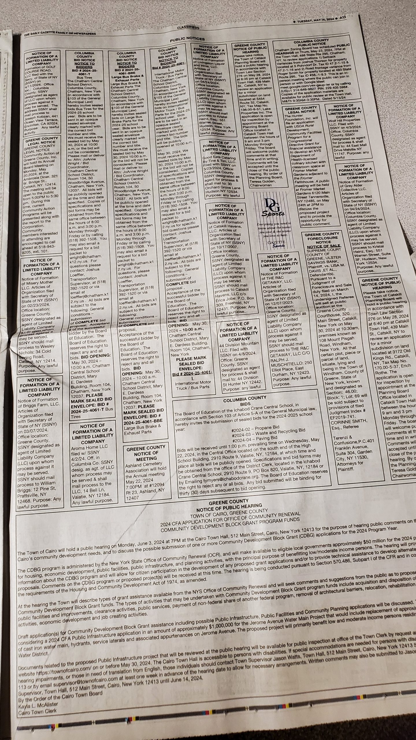 There will be a Cairo Town Board meeting on June 3, 2024 at 7pm in the Town Hall Meeting Room…