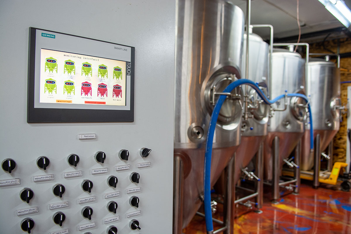 Their goal was to not only outfit a productive brewery capable of crafting, fermenting, kegging, and canning up to seven 10-barrel (310 US gallons/barrel) batches at any given time, but to create an authentic space for people to gather and enjoy each other’s company, live entertainment and great craft beverages.