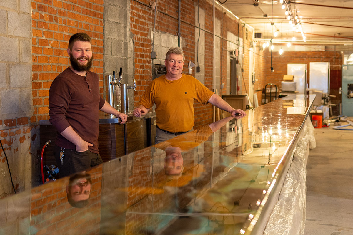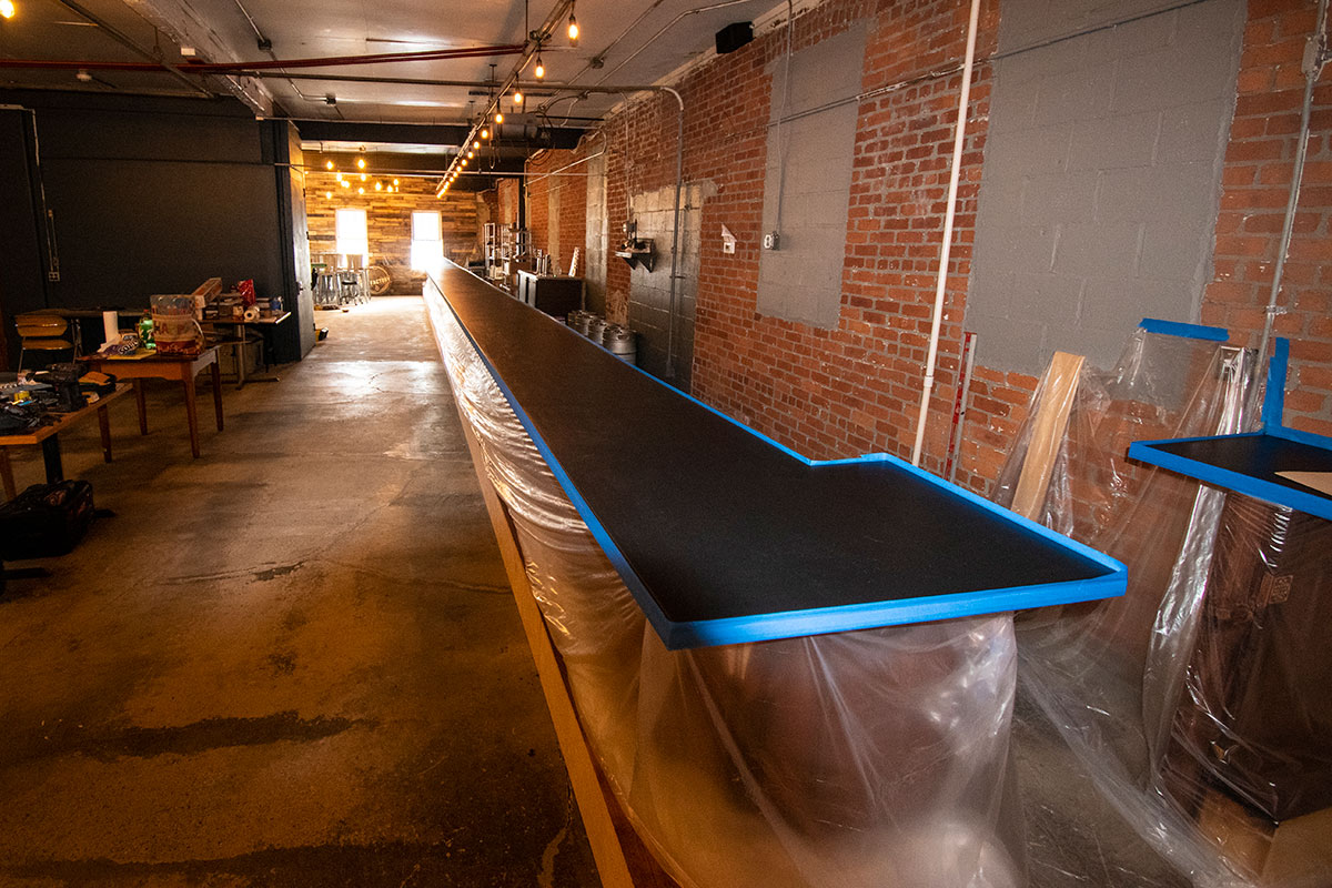 As the year drew to a close, Tim and his crew prepared to open and welcome their first patrons in Mid-December. With the equipment in place in the brew-room on the other side of windows into the main space, 10-Barrel batches were fermenting, and the work turned toward the bar.