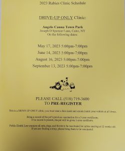 Due to inclement weather, the rabies clinic that was scheduled for tonight, June 14th has been postponed to June 21st, next Wednesday.